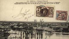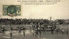 Le village de Fadiouth au début du siècle : les gosses jouaient déjà sur les terrains de sable dégagés à marée basse. Notez la densité des cases sur cette petite île. Si aujourd’hui les cases ont disparu, les petites maison typiques sont toujours aussi serrées !